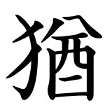猶(오히려/원숭이 유)는 犬(개 견)을 뜻으로 삼고 酋(묵은 술 추)의 소리를 취한 형성문자입니다. 원래 원숭이를 뜻하는 글자였으나 지금은 ‘오히려’의 뜻으로 사용되고 있습니다. 猶가 포함된 단어에는 유예(猶豫), 유태계(猶太系)가 있습니다.