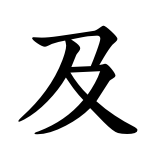 及(미칠 급)은 人(사람 인)과 又(또 우)를 결합해 사람 뒤에 손이 닿는 모습을 그린 회의문자로서 영향이 미치다, 장소나 시간에 이르다 등의 의미를 가집니다. 及이 포함된 단어에는 보급(普及), 언급(言及), 가급적(可及的) 등이 있습니다.