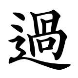 過(지날 과)는 辶(쉬엄쉬엄 갈 착)을 뜻으로 삼고 咼(가를 과)의 소리를 취한 형성문자입니다. 過가 포함된 단어에는 과정(過程), 과거(過去), 사과(謝過), 통과(通過) 등이 있습니다.